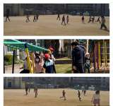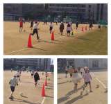 1組が外遊びをしています。 春のような日差しを身体いっぱい浴びながら、楽しそうに...