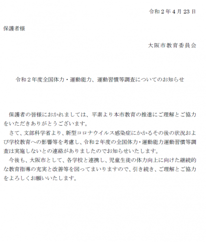 令和2年度全国体力・運動能力、運動習慣等調査についてのお知らせ