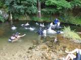 収穫体験で汗をかいた後、川遊びをしました。泳いだり、魚やカエルをつかまえたりしま...