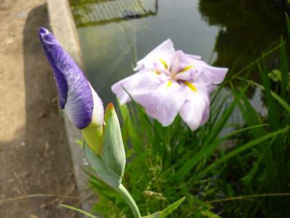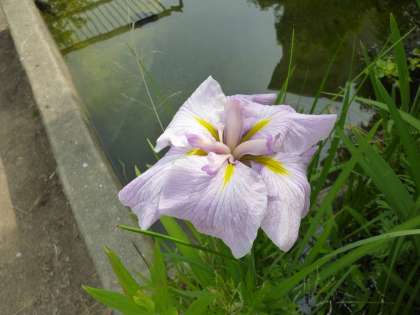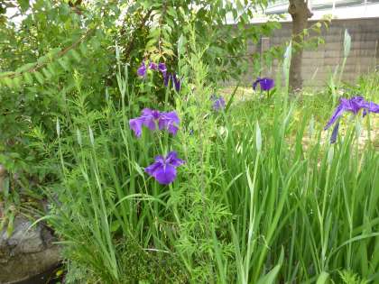 学習池のほとりで咲いた花はアヤメ?それともカキツバタ?それともハナショウブ?