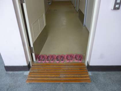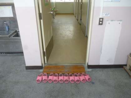 児童朝会が終わり校内をまわっていると、トイレのスリッパがとてもきれいに揃えてあることに気づきました。