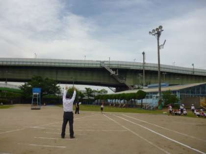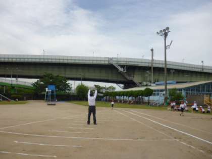 今日は特別に校長先生が参加し、1年生が投げたボールを拾ってくれました。