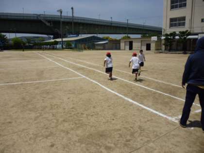 友だちを応援する声が運動場に響いていました。微笑ましい光景でした。