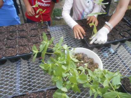 マリーゴールドなど新しいおうちに植え替えました。