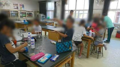 それぞれ色を工夫したり、混ぜるホウ砂水の量を変えるなどしたりしていました。