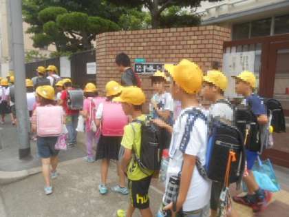 本日は暴風警報が発令されたときを想定して集団下校を行いました。