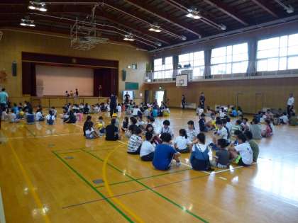 その後、集会委員会の司会進行でピカピカゴロゴロというゲームをたてわり班でやりました。