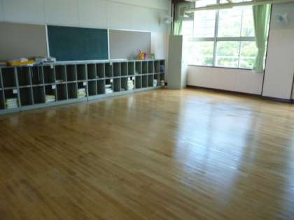 各教室では長期休業中の恒例である油引き(ワックスがけ)をしています。