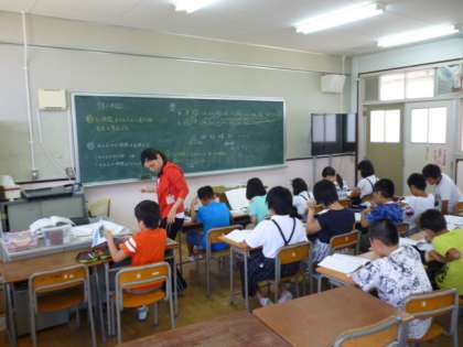 5年生では学びをより確実にするため、1学級を2つに分けて指導しています。