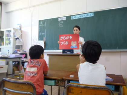 1・2年生向けには紙芝居を使い、栄養の大切さ教えていただきました。