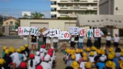 今年の運動会のめあては、「みんなが楽しく協力して思い出にのこる運動会」です。