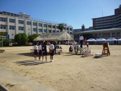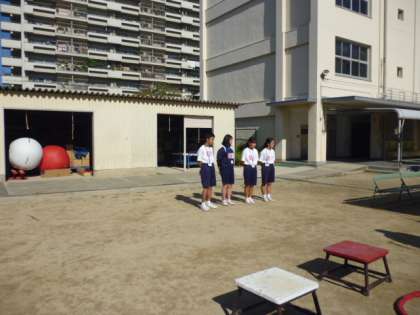 本校の卒業生で、現在新北島中学校2年生の4人が職場体験に来ています。今日明日と小学生の友だちと遊んだり、教職員のお手伝いなどをします。