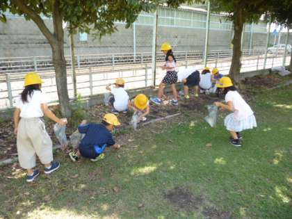 10月4日(金)に学校の隣にあるAグランドへどんぐりをとりにいきました。
