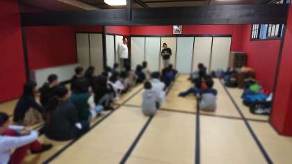 雨のため、室内で朝の会です。 もうすぐ朝食です。