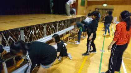 本日は6年生と5年生が学習発表会の座席の準備をしました。