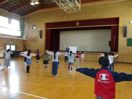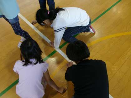 体を使って数を表したり、ひもを使って形とりゲームを行ったりと楽しく算数の学習をしていました。