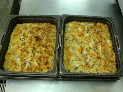 ほうれんそうのグラタンは、冷凍ほうれんそう(新登場)、たまねぎ、ベーコンのほか、ホワイトソースとよく絡むエルボ型のマカロニを使用しています。