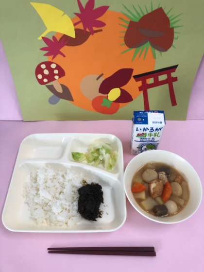 関東煮は、鶏肉、うずら卵、新食品のまる天を主材に、じゃがいも、こんにゃく、あつあげ、だいこん、にんじんを使用し、砂糖、みりん、塩、うす口しょうゆ、こい口しょうゆで味つけし、煮含めます。【うずら卵】の個別対応献立です。