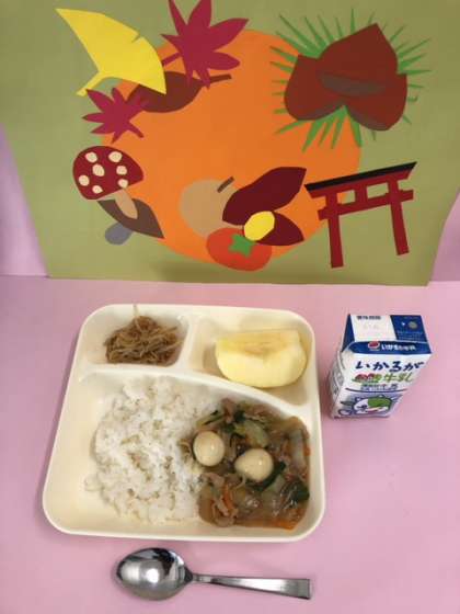 中華丼は、豚肉、うずら卵、旬のはくさい、たまねぎ、たけのこ、にんじん、にら、しょうがを使用し、塩、こしょう、こい口しょうゆ、中華スープの素で味つけし、最後にとろみをつけます。この献立は、【うずら卵の個別対応献立】です。