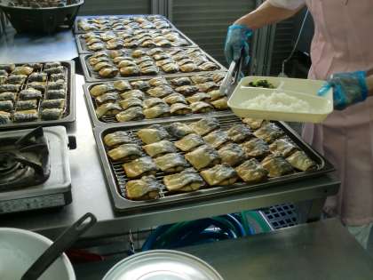 今日の給食では、さばのみぞれかけが登場します。みぞれとは、雪が空中で溶けかかって、雨と混じってふるものです。すりおろしただいこんが、このみぞれを連想させることから、だいこんおろしをかけた料理を「みぞれかけ」と呼びます。