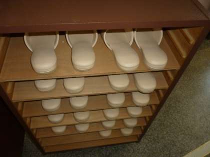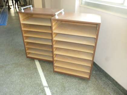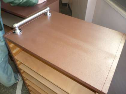 磨きや塗装、タイヤなどをつけ綺麗なスリッパラックとなりました。