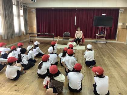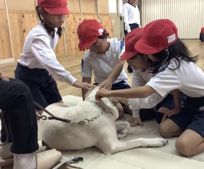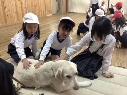 3時間目に木育ルームにて、実際に盲導犬と生活をしている方から、盲導犬についてお話をしていただきました。