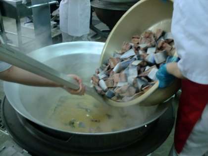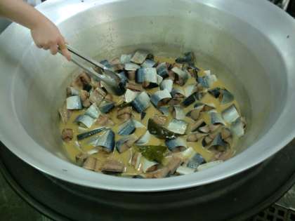 さばのみそ煮は、煮くずれを防ぐため骨つきのさばを使用しています。さばの臭みを消し、食べやすくするために、しょうがやみそを使っています。