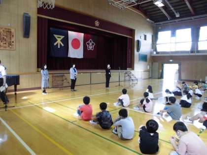 離着任式では、新たに平林小学校へ来られた教職員の方の紹介と、令和元年度末人事異動で本校を去られた教職員の方を紹介しました。