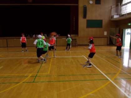 チームでめあてを決めて、リーダーが中心になって練習を行ったあと、試合を行いました。相手チームに対しても応援や優しい言葉がけが飛び交い、このクラスの良さが出ていました。