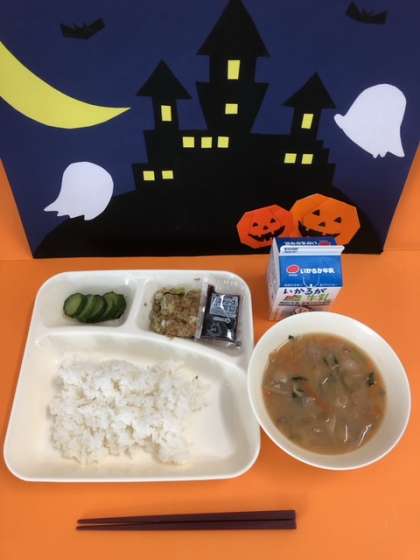 お好み焼きは、大阪の食文化を紹介する献立です。鶏卵、水、やまいもとろろ、小麦粉、塩で作った生地に、かつおぶし、あおのりを混ぜ、キャベツ、青ねぎを加えて焼き物機で焼き、1人分の大きさにします。小袋のトンカツソースをかけて食べます。