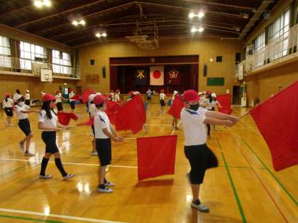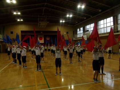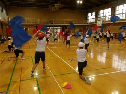 大きい旗なので、重く扱いづらいと思いますが、懸命に動かしています。