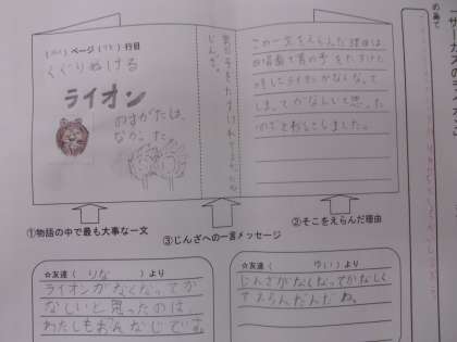 現在、3年生では国語科の学習で「サーカスのライオン」を学習しています。