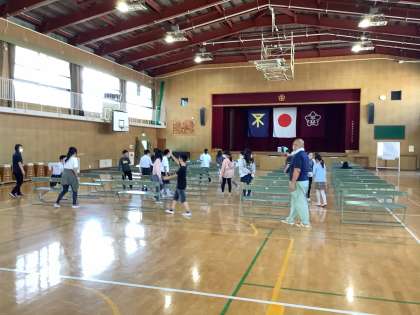 3時間目に、明日行われる就学時健康診断の会場設営を5年生で取り組みました。