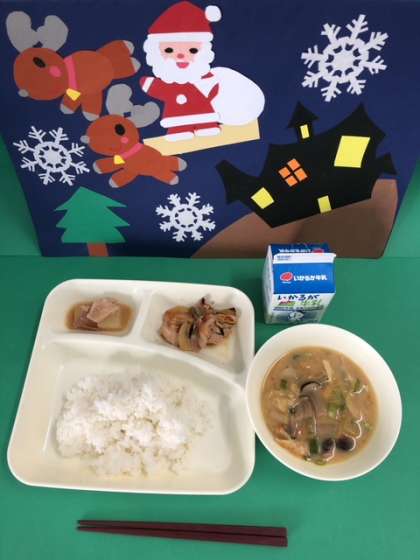 だいこんは、冬にたくさんとれる野菜です。12月の給食には「冬野菜のカレーライス」や「さばのみぞれかけ」「五目汁」など、だいこんを使った料理が9種類も登場します。今日は、豚肉が入った「だいこんの煮もの」です。