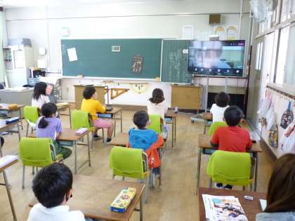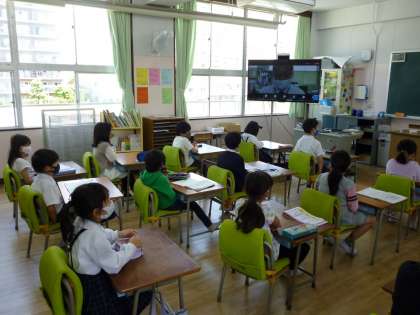 感染症予防のため、教室でteamsを活用して児童朝会を行いました。