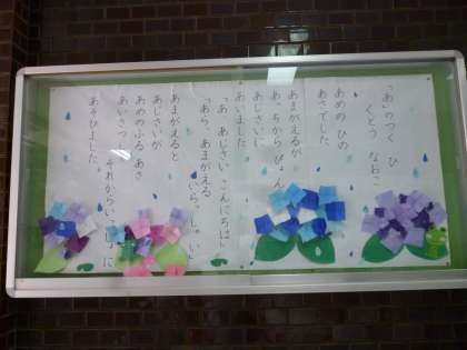 玄関掲示もあじさいが出てくる詩に変わりました。