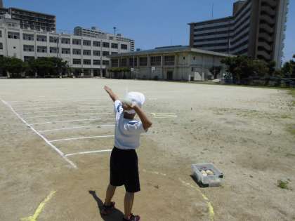 天気も良い日が多かったので、運動場で「ソフトボール投げ」を行いました。