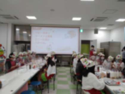 説明を聞きながら、5種類の中から自分の好きな味を選んで、ベビースターラーメンを手作りしています。