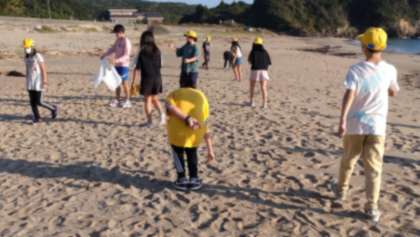朝の散歩の時に、昨日花火をした砂浜の清掃活動をしました。