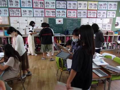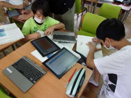 「与吉じいさは太一に何を教えたかったのか」という課題について、自分の考えをタブレットに書き、意見を交流しました。