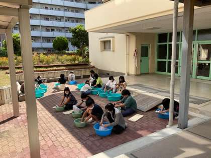 運動会の練習で汚れた体操服を手でしっかり洗うことができました。