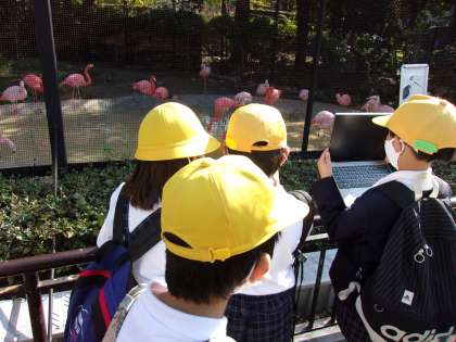 2年生はタブレットを使い、色々な動物を撮影しました。撮影した画像は、生活科で活用します。