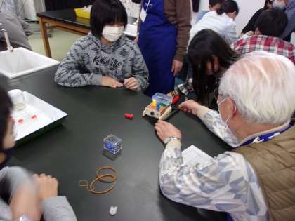 地震がおきる仕組みを模型を使って実際に体験しました。