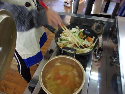 今日は、5年生の時にできなかったサラダ、エコスープ、野菜炒めをしました。