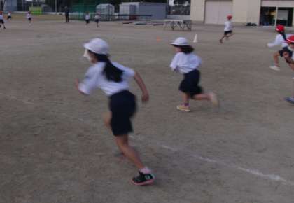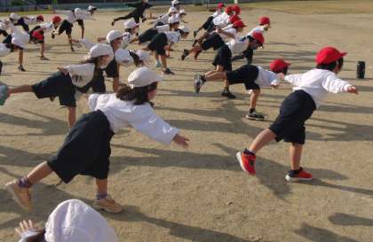 2年生と一緒に体育の出前授業を行いました。前半は音楽のリズムに合わせて体を動かしました。バランスを保つポーズの「ひこうき」では、「あちこち見ずに一点を見ればふらつかないよ。」と教えてもらいました。後半は走り方を教えてもらい、あっという間の1時間でした。