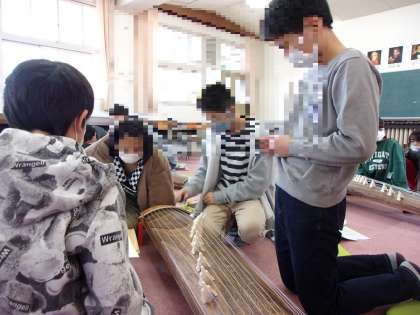 2日(金)1・2時間目に講師の方にお越しいただき、お琴の学習をしました。