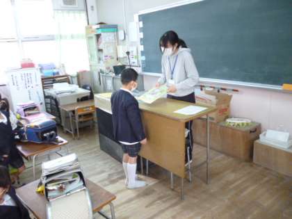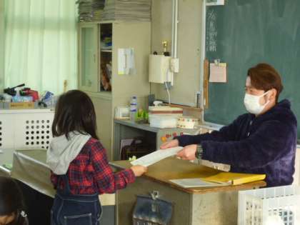 2学期頑張ったことやこれからの課題について一人ひとりに伝えていました。