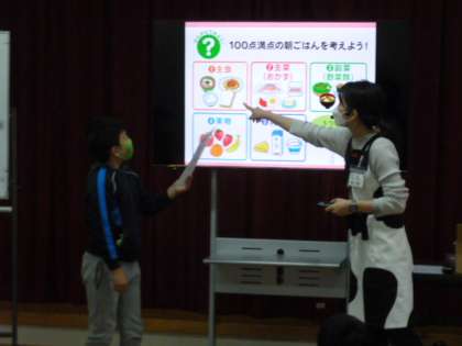管理栄養士の方に来ていただき、朝食の栄養バランスについて学習しました。