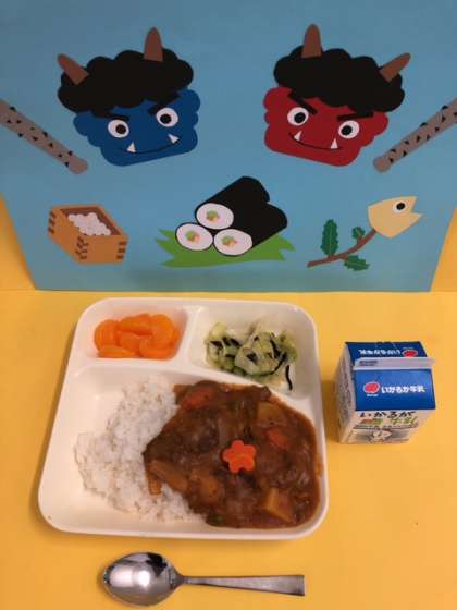 ハヤシライスは、牛肉を主材に、小麦粉と綿実油で作る手作りのブラウンルウ、デミグラスソースなどを加え、煮こんで仕上げます。給食室で花形に切り抜いたラッキーにんじんが入っています。