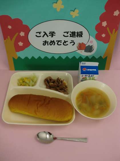 スープは、鶏肉で旨みを出し、じゃがいも、たまねぎ、にんじん、グリンピースで彩りよく仕上げています。